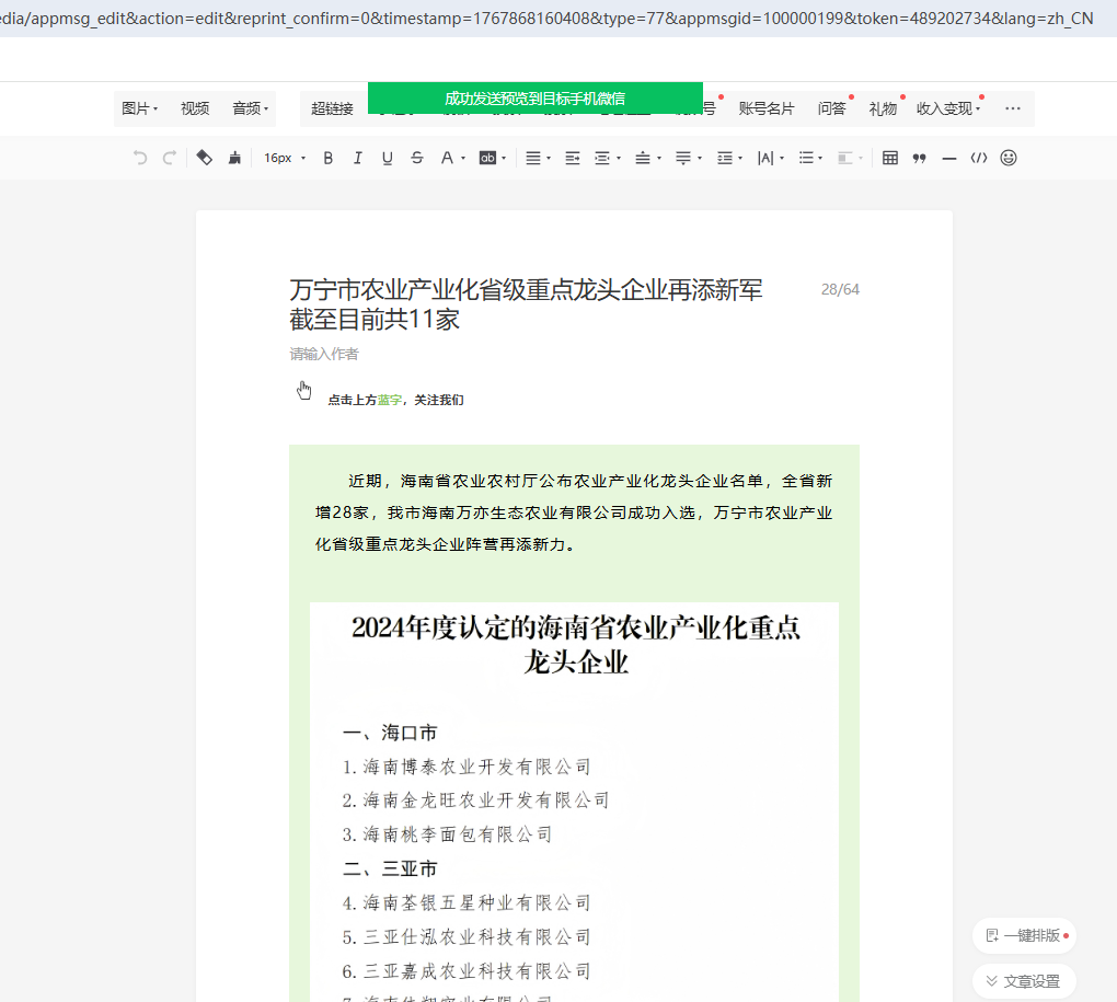 电脑端提示已经发送预览成功,但手机端接收不到预览链接。