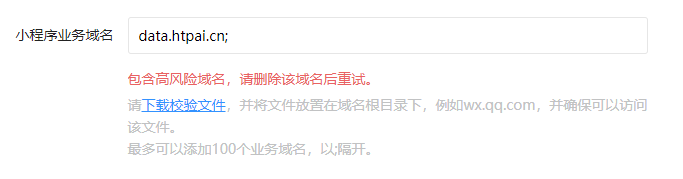 我公司的第三方平台配置公众号开发域名提示高风险域名不能配置,之前没有任何违规记录。