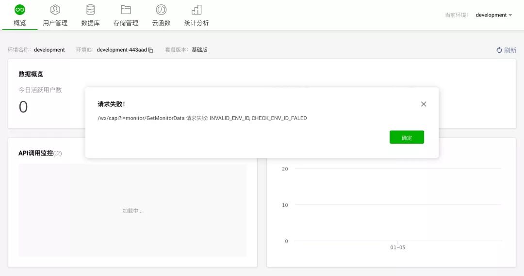 点开“云开发”每一项都报同样的问题,也无法在创建环境(目前只有一个环境)