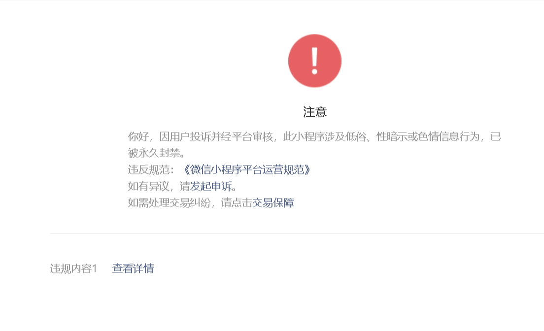 我开发的砂舞舞讯小程序主要为舞蹈爱好者提供合法合规公开的舞讯咨询服务,结果被腾讯认为是涉嫌低俗,直接永久封号,我非常冤枉。我仔细阅读了《微信小程序平台运营规范》,发现我开发的微信小程序没有半点儿违规,但就是被腾讯认为是涉及低俗、性暗示或色情信息行为,这种误判行为对每一个小程序开发者都是不公平的,接近月末,腾讯不但封了我的小程序,还直接没收了我的流量主收入,对此,我非常愤慨,表示抗议。
