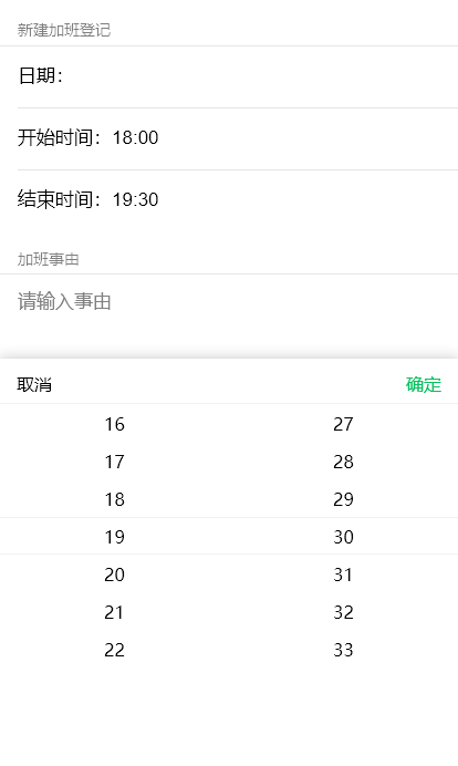 <picker name="endTime" data-field="endTime" mode="time" value="19:30" start="{{startTime}}" end="24:00"