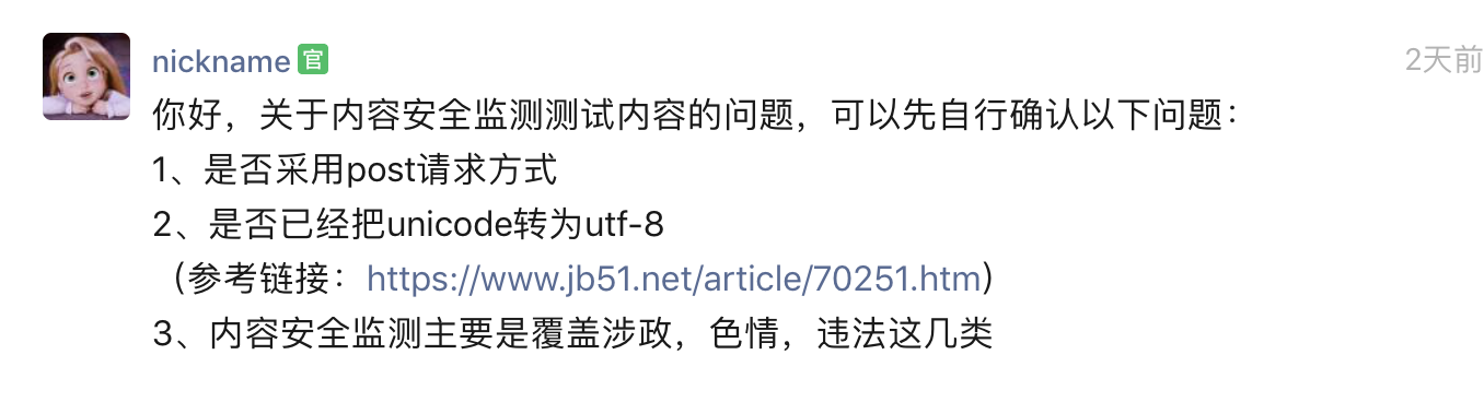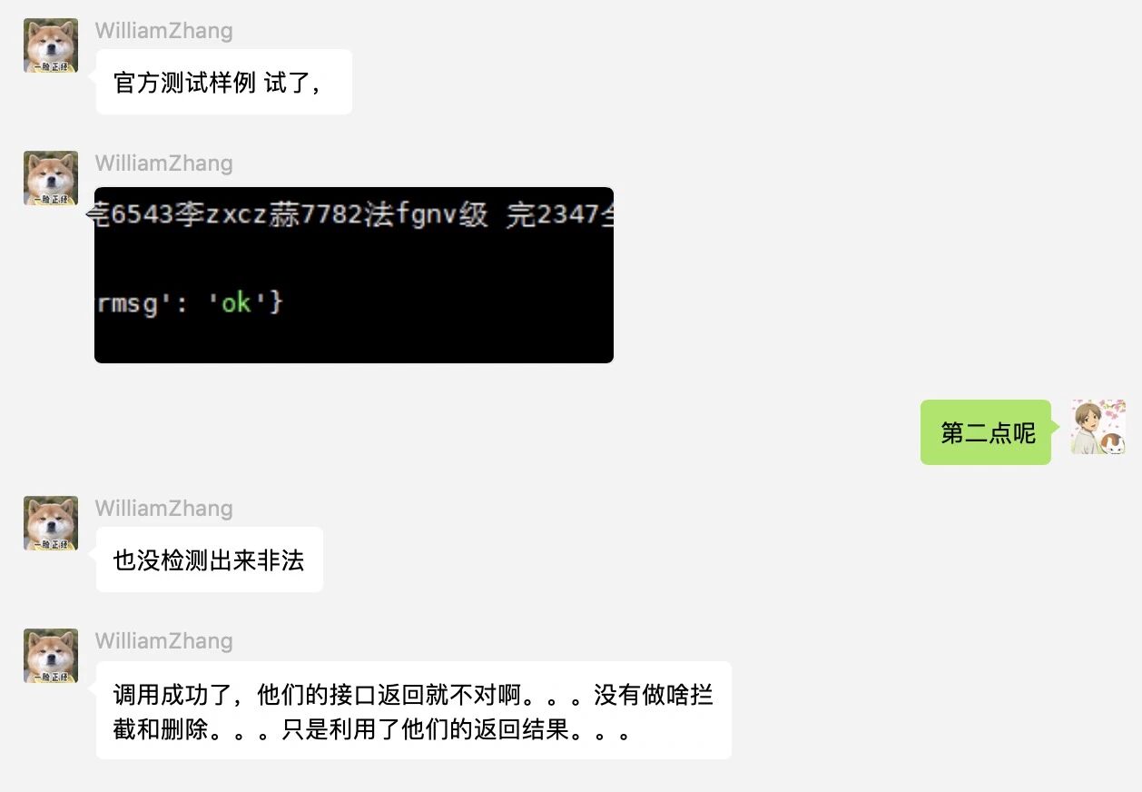 2、接口调用成功情况下,确认开发者是否有做内容拦截或删除。