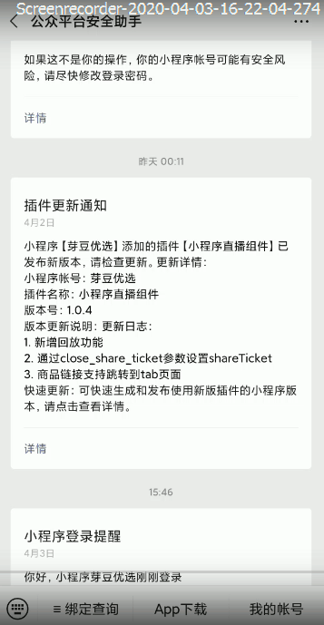 微信直播前两天 更新了1.0.4版本,也发送插件更新通知了,