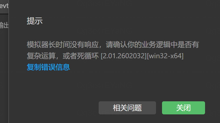 message:模拟器长时间没有响应,请确认你的业务逻辑中是否有复杂运算,或者死循环
