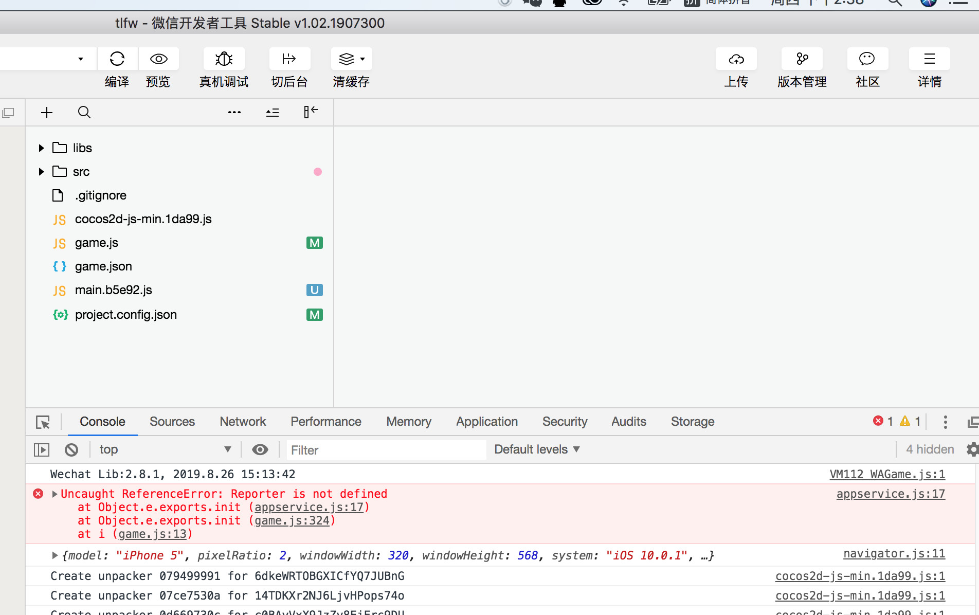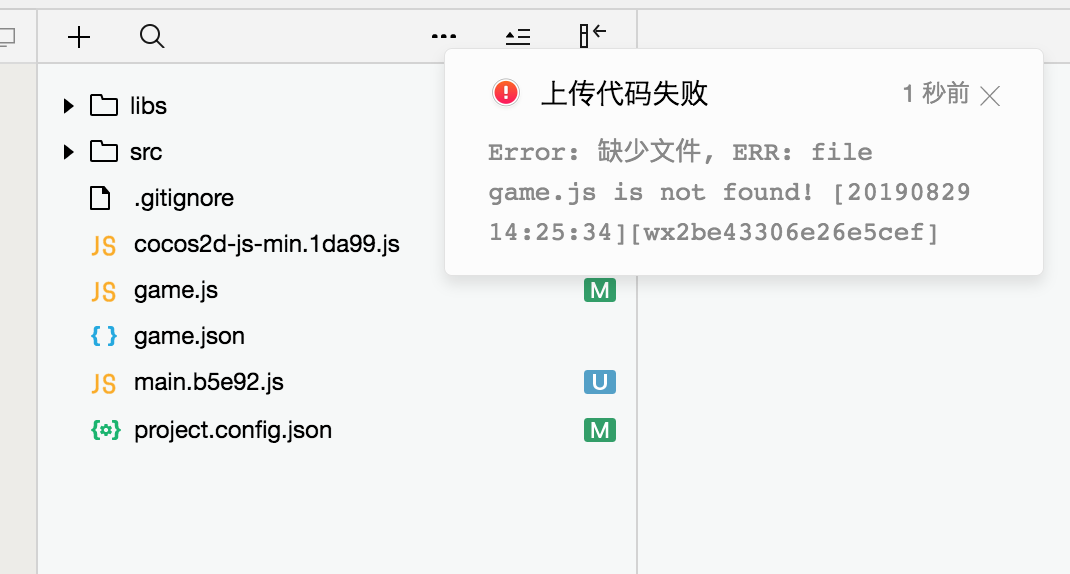 一直提示我缺少game.js,但是我却有,我换台电脑能上传,请问这个怎么解决现在出现这个问题,其他电脑都无法上传了