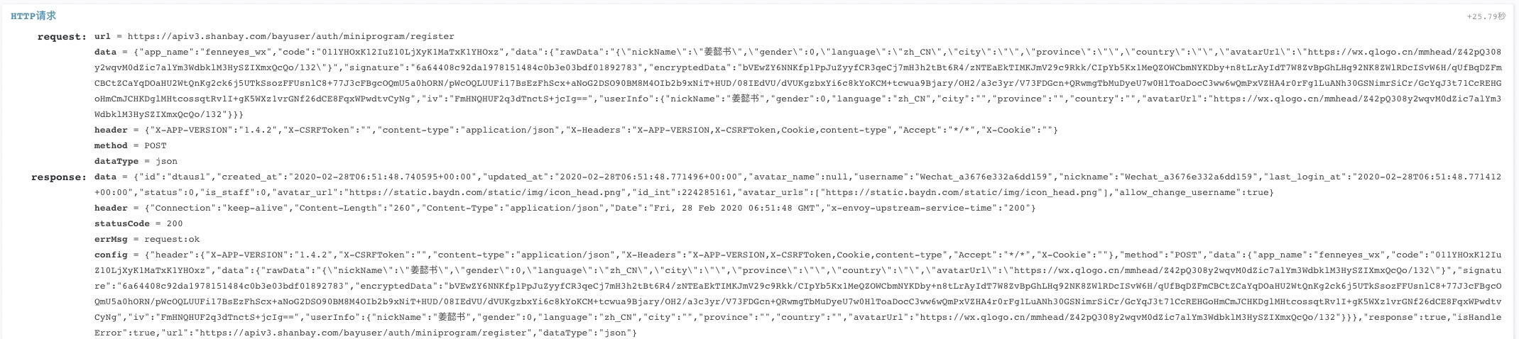 第一张图证明我们业务响应了header,第二张图证明最后出去的时候,响应body长度是497,第三张图证明最后客户端拿到的Content-Length是260,且没有Set-Cookie,第四张图也是返回header中没有set-cookie回来。微信审核人员用的sdk版本号是2.10.0版本