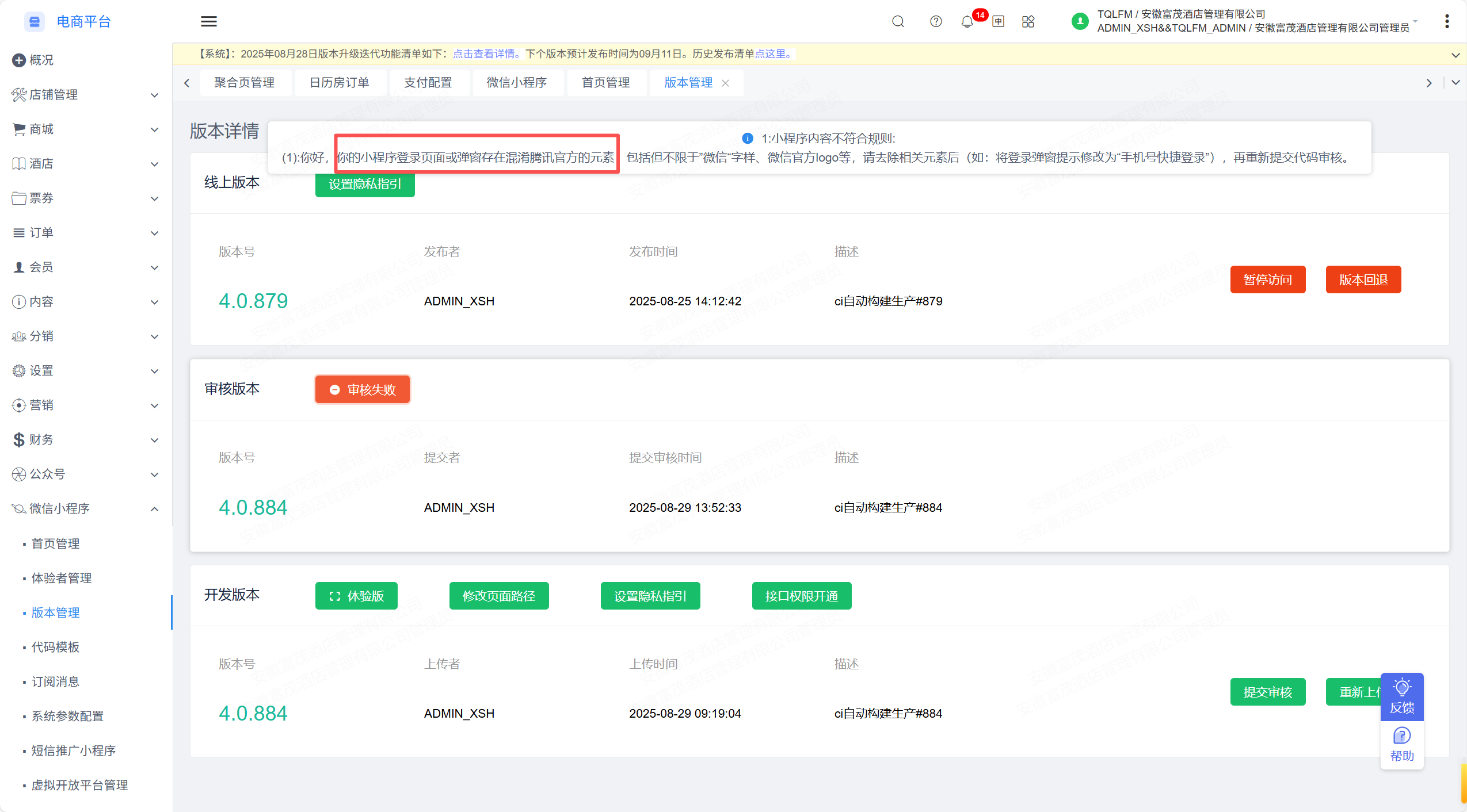 请整改后再提审,后续审核将以实际提审的服务内容为准。