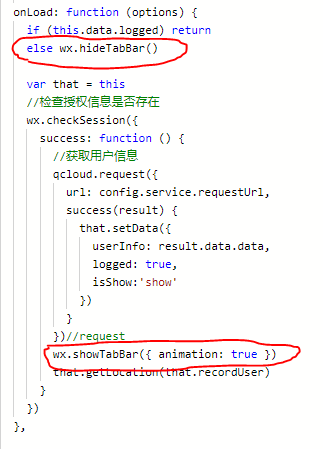 好奇葩的问题啊这个是注释掉wx.hideTabBar()后的样子