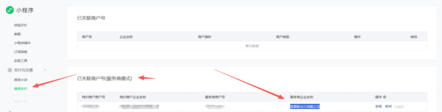 原因难道是接入易票联支付的原因?小程序的主体是A,微信支付下的:已关联商户号(服务商模式) 下:特约商户商户号(微信商户号)、特约商户企业全称 都是主体A的,服务商企业全称为:易票联支付有限公司。难道是:小程序主体和特约商户商户号都是A判定我们是自营的?易票联的服务商交易模式触发判定我们为实体电商小程序?