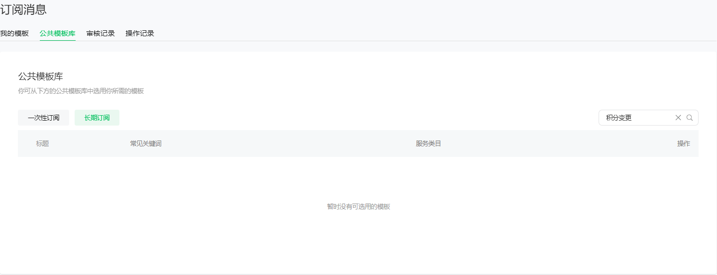 学校的小程序需要一个长期的订阅消息通知,看了现有的模板模板没有符合的,如何申请长期订阅消息模板?可以申请的话入口在哪里?