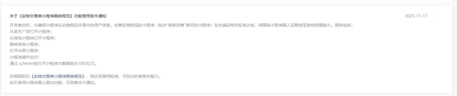 限制的规则是啥?里面也没有说明啊,为什么相同的服务类目,有些小程序收到了,有些又没有收到这个通知呢。