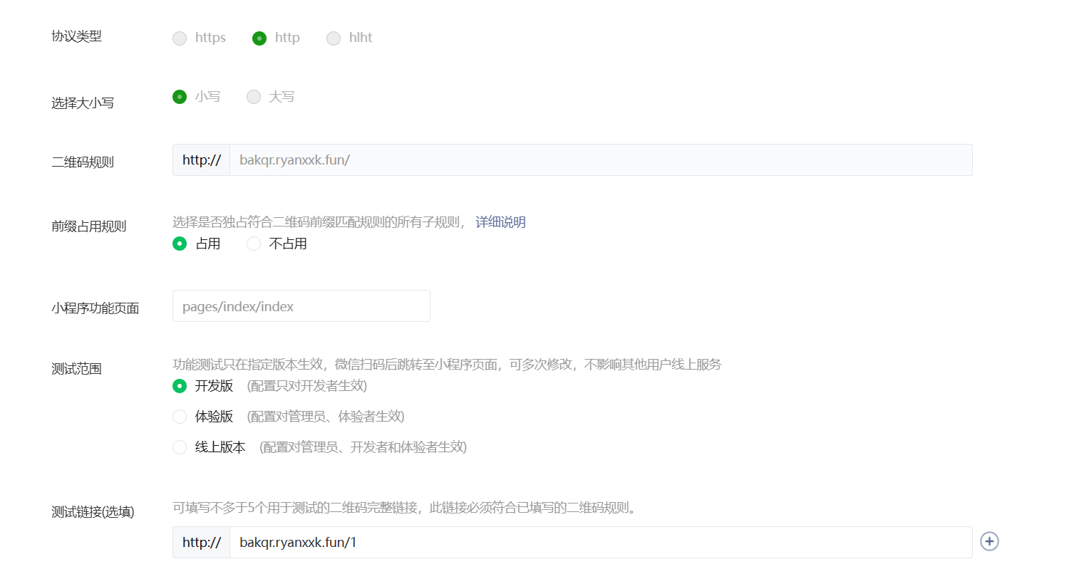 配置的域名:http://bakqr.ryanxxk.fun/(根域名已ICP备案)