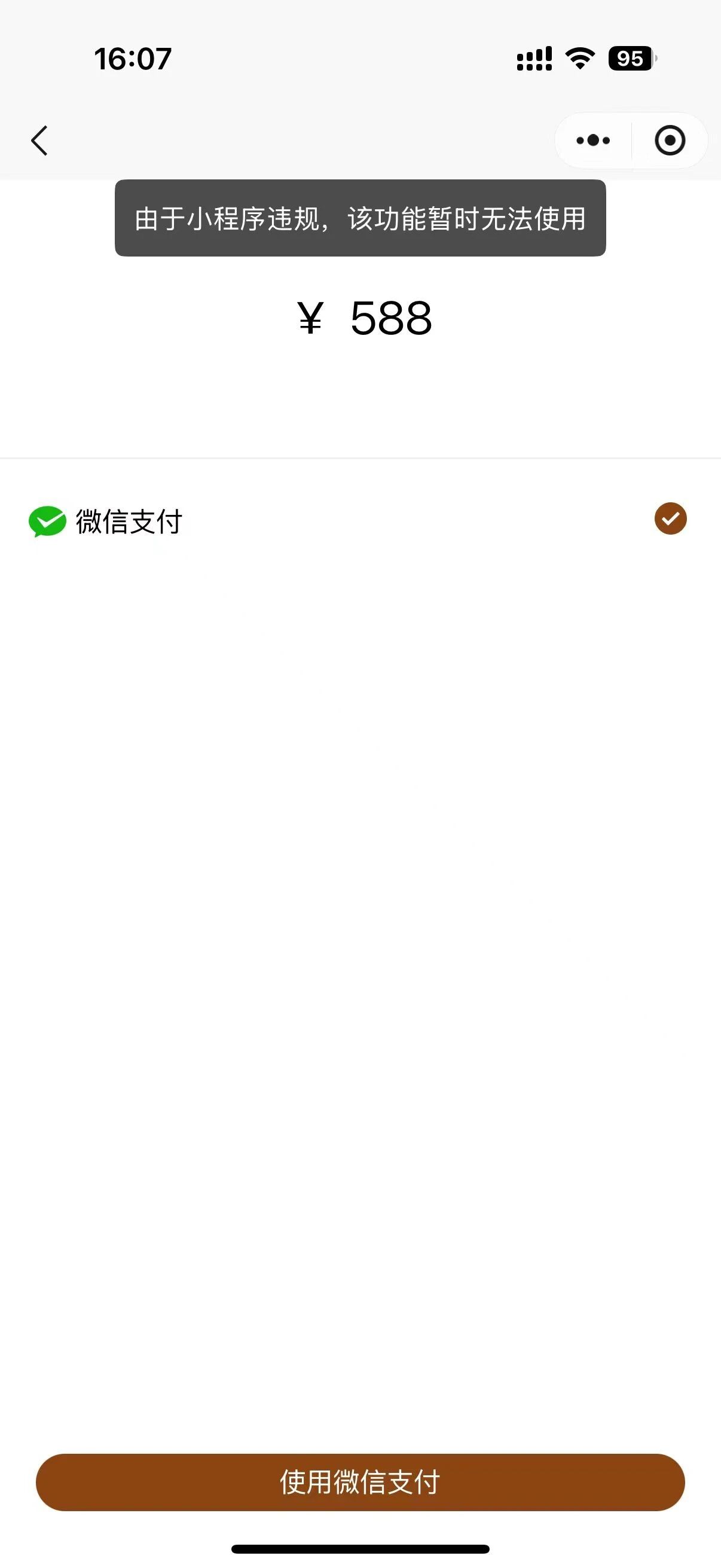 小程序支付无法使用,没有申诉入口