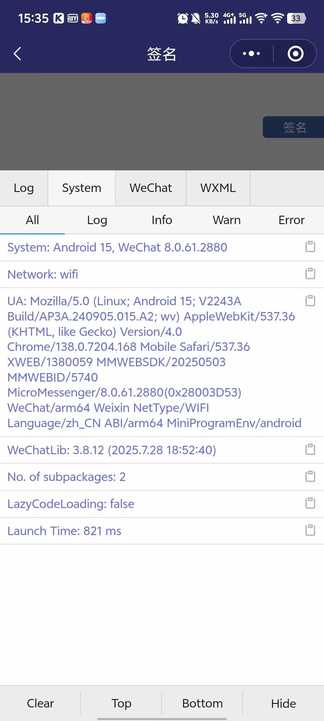 能稳定复现吗? 截图看看vConsole system 面板上面信息