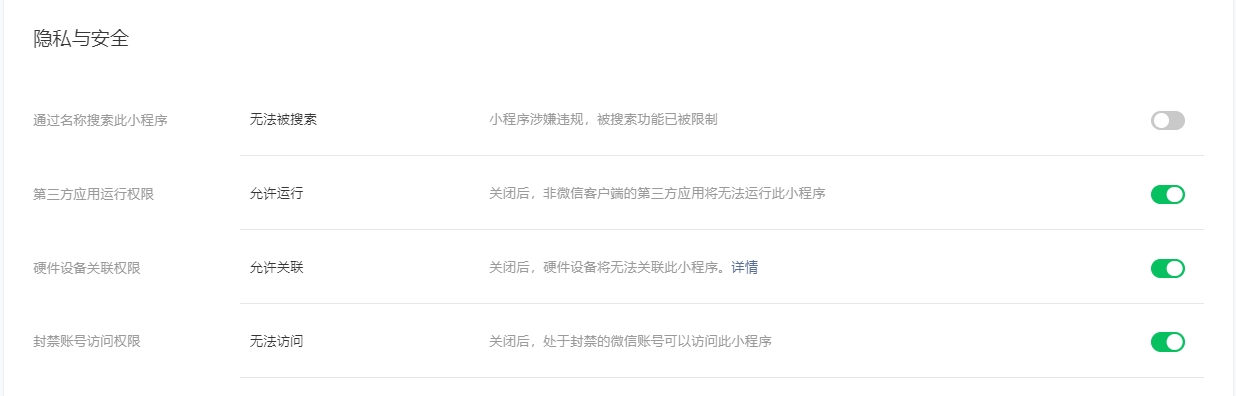 你好,可自行登录小程序管理后台,点击【版本管理-线上版本-备案状态】进行查看,由于目前你的小程序备案申请仍处于等待管局审核中,发布上线后小程序将无法被搜索,并限制小程序用户数,完成备案后即可解除限制。