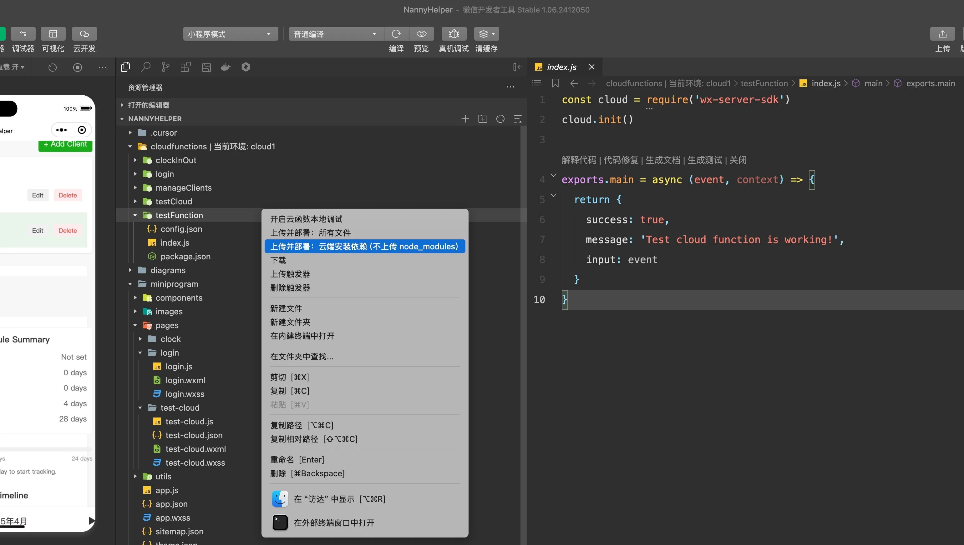 在微信开发者工具中,更新云函数,选择【上传并部署:云端安装依赖(不上传 node_ modules)】