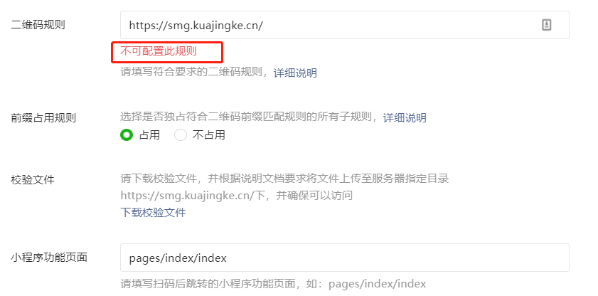 扫普通链接二维码打开小程序, 一直是不可配置此规则。