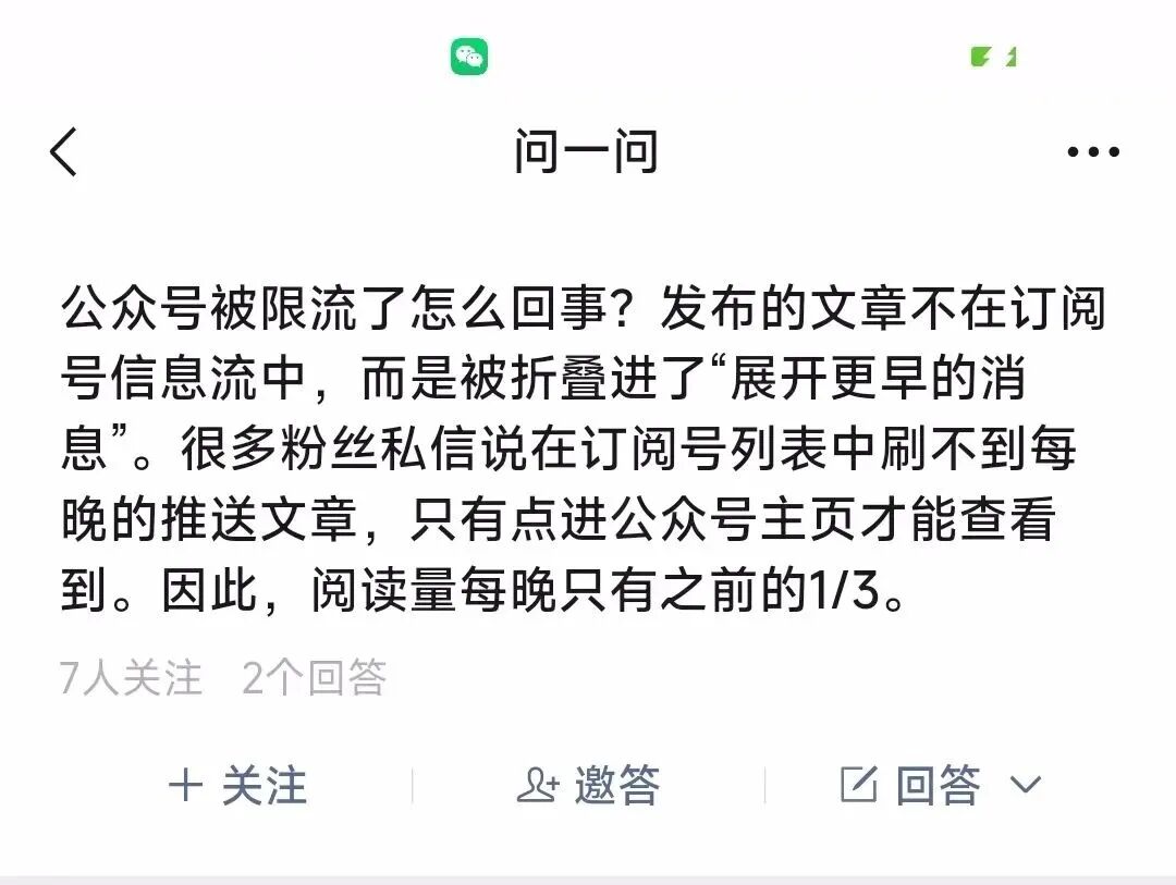 另外,通过测试发现,在推文一个小时后,用户在订阅号信息流里很难刷到,文章要么被置底了,要么就完全刷不到,这是什么情况呢?