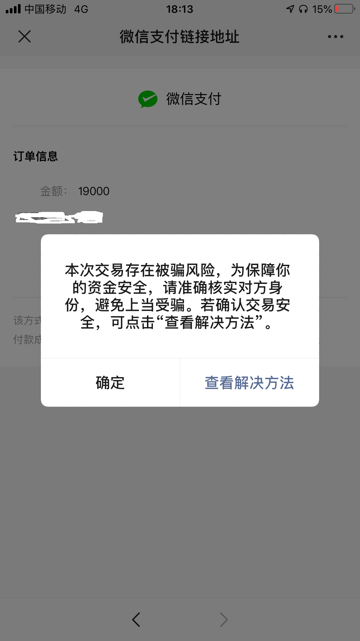 如图,客户在支付19000元时,弹出这个提示。