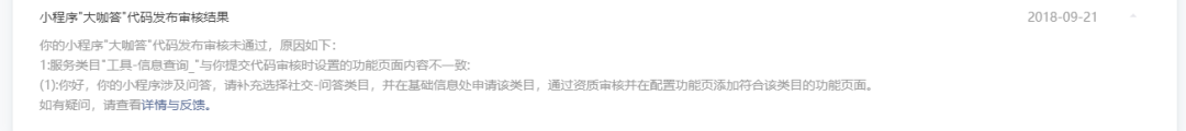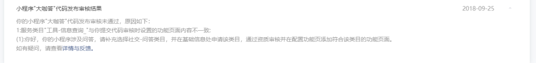 你好,经核实,贵方小程序选择了社交-问答类目,该单小程序由属地网信办审核中,若请求加速,请联系属地互联网信息内容主管部门,感谢您的理解!