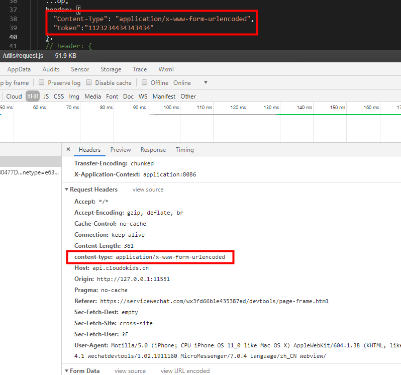 header: Object.assign( { "Content-Type": "application/x-www-form-urlencoded" }, { "token": wx.getStorageSync('userData').token}), 这样设置,'Content-Type'会显示,‘token’不显示,求助