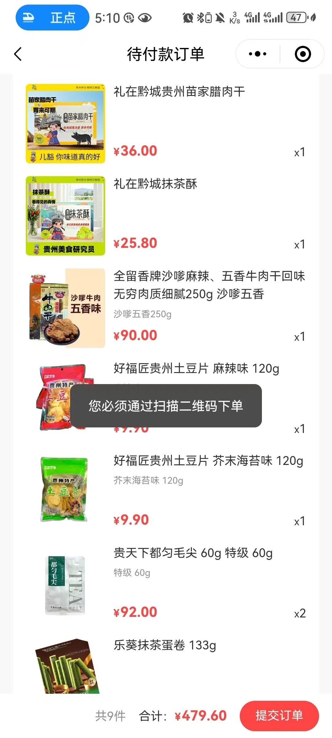 这提示看起来是你们自己系统限制,只允许通过扫一扫场景进入才可以进行下单
