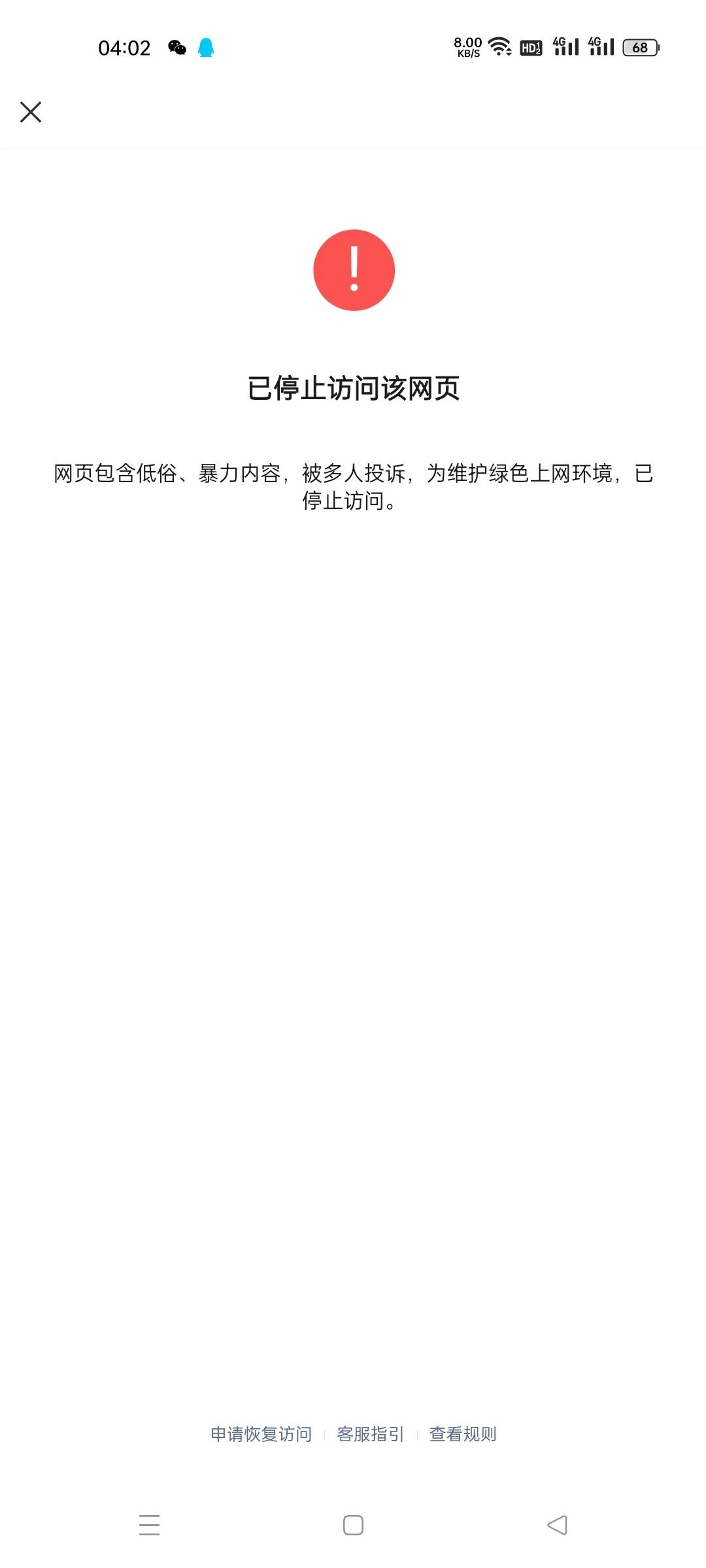 你好,经审核,域名qxqx8.com下的违规内容已经修改,现已恢复微信内直接访问的服务,请知悉。