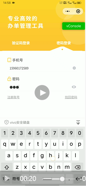 使用vivo安全键盘输入密码之后,收起软键盘,去点击登录按钮,登录按钮无反应,但是在手机号输入完之后去点击登录会有响应,请问这个是什么原因,可有解决方案。