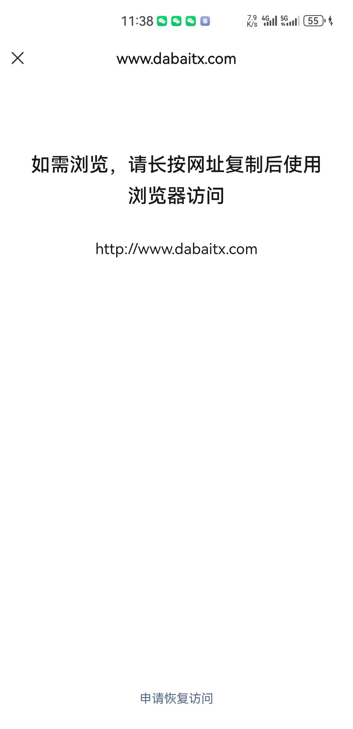 你好,经核实,该域名涉及电话卡/手机卡/流量卡等售卖内容,请提供与域名相关的《电信业务经营许可证》或与运营商签订的合作协议发送至邮箱<moment@tencent.com>提交申请恢复,请知悉。