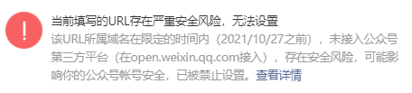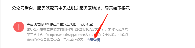 公众号后台,服务器配置中无法绑定服务器地址,显示如下提示