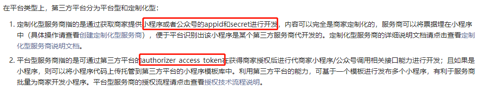 定制化型服务商,可以通过小程序或者公众号的appid和secret进行开发