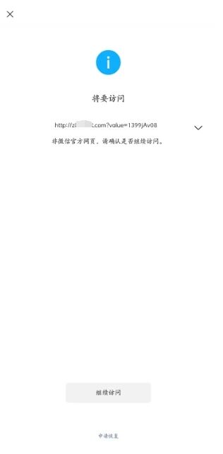 “将要访问 http://xxxxxx.com?value=1399jAv08 非微信官方网页,请确认是否继续访问。”