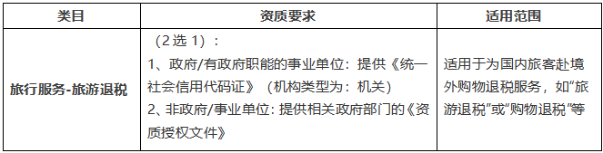 1、【旅行服务-旅游退税】:涉及为国内旅客提供赴境外购物退税服务