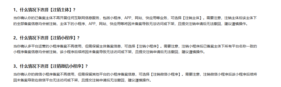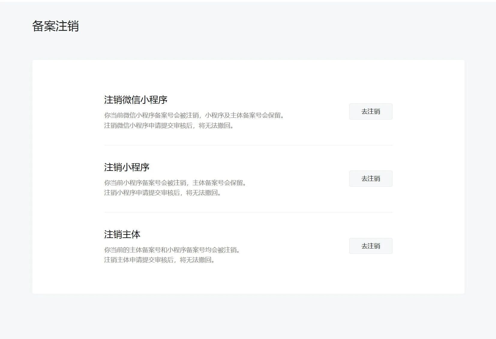 注销小程序:清空同主体下所有平台小程序的备案号,只要是小程序就都算进去