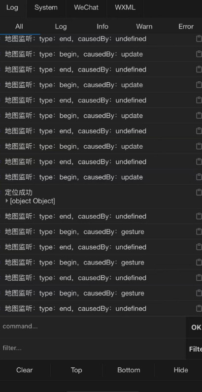 文档中写的 causedBy返回拖动地图导致(drag)、缩放导致(scale)、调用接口导致(update),而我得到是只有update、gesture、undefined,我真的非常需要知道用户是缩放还是拖动