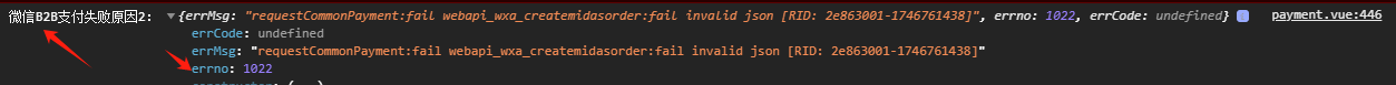 小程序正常运行了几个月,B2B微信支付一直都是正常的,今天突然付款失败显示