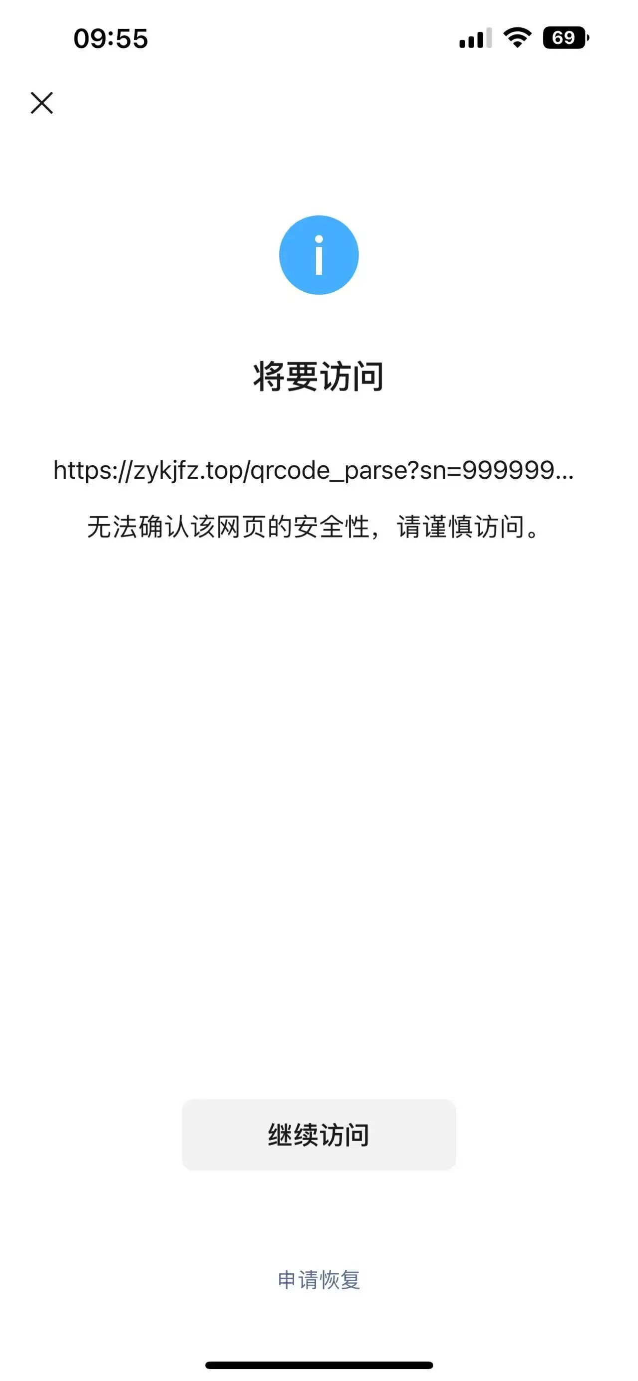 https://zykjfz.top 在阿里云注册并备案通过,服务器也阿里云,浏览器访问正常,二维码规则:https://zykjfz.top/qrcode_parse?sn=(设备号枪号)