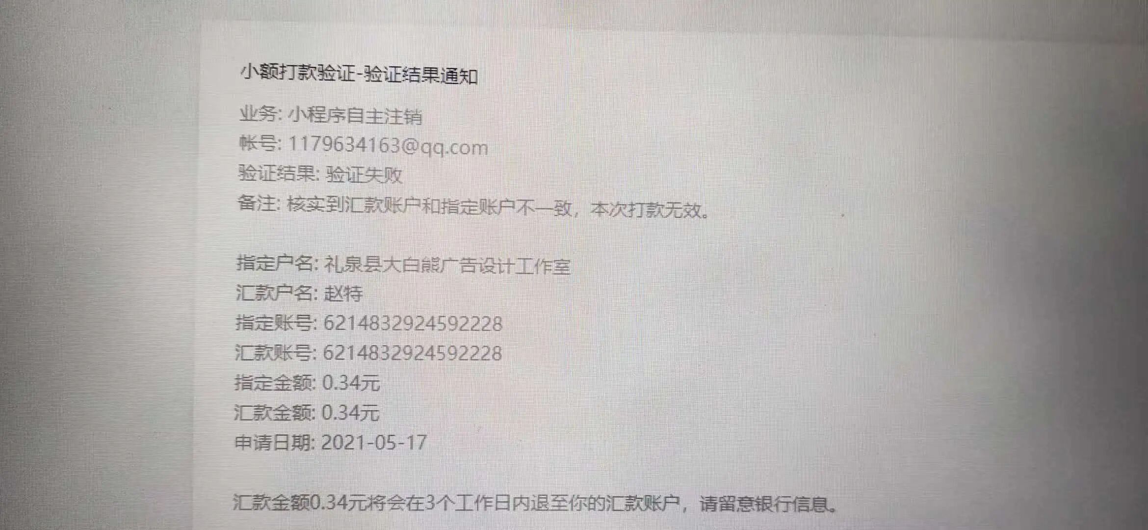 听说只能绑定一个小程序的客服才有提示音 我想注销掉之前的大白联盟官方 结果提示汇款失败,着急 着急 着急