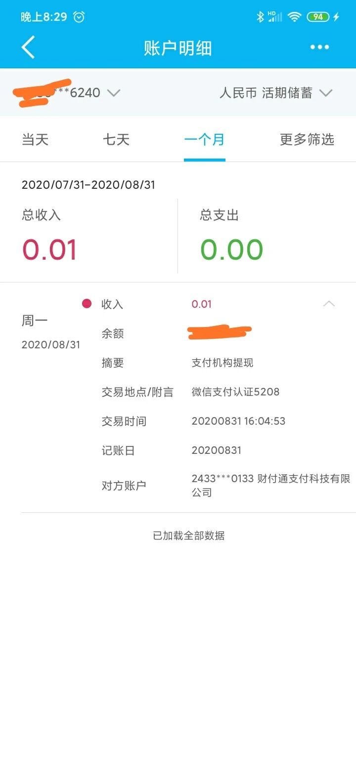8月31日 16:04提现到账;