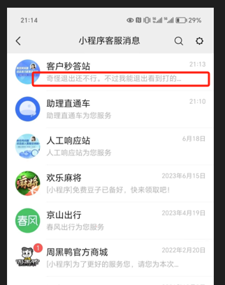 如图所示:在微信小程序客服组手这边可以看到小程序客服的最新的一条消息,但是点击进入后却显示空白(有时候闪一下就消息就不见了),个别用户反馈会这样,大部分用户都不会,麻烦微信大大看下