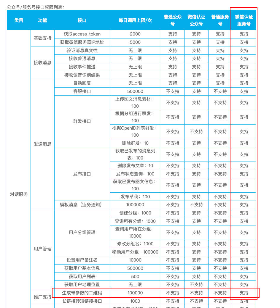 我看createQRCode(/cgi-bin/qrcode/create) 这个接口式在服务号文档里面的,然后切换到公众号文档是找不到这个接口的。这个接口能在公众号调用吗?