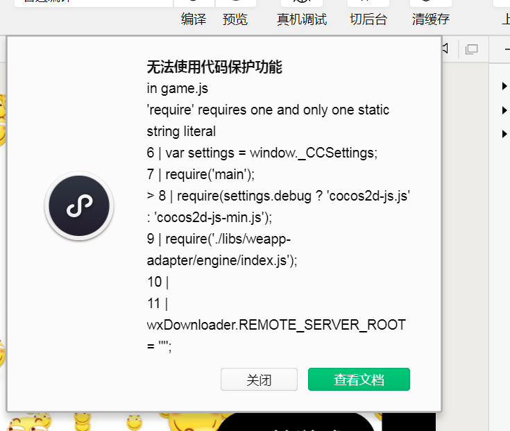 弹框有提示,require 只能传静态字符串,不能传变量。