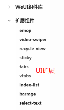 view、text、image三种标签。建议把扩展组件放到weui里面去。不用单独引扩展。希望支持一些动画类型的扩展吧,比如类似于lottie.js的这种。