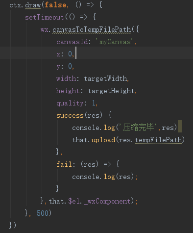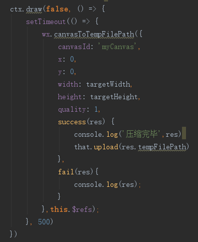 在kbone中成功绘制了上传的图片,但是使用wx.canvasToTempFilePath没有进success或者fail中