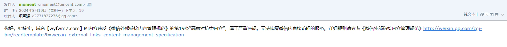 烦请管理员告知域名下哪条链接违反相关规则,已经多次发起申诉,没有回复。