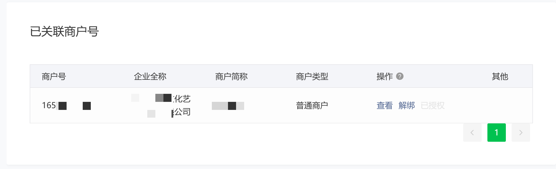 于是按照要求操作后,绑定了服务号,同时注意到默认也关联了一个商户号(服务商模式)。但操作完以后发现小程序还是无法支付,又重新解绑重新操作,但商户号(服务商模式)解绑后就不知道怎么再绑定了。所以目前只关联了商户号一个。如下图
