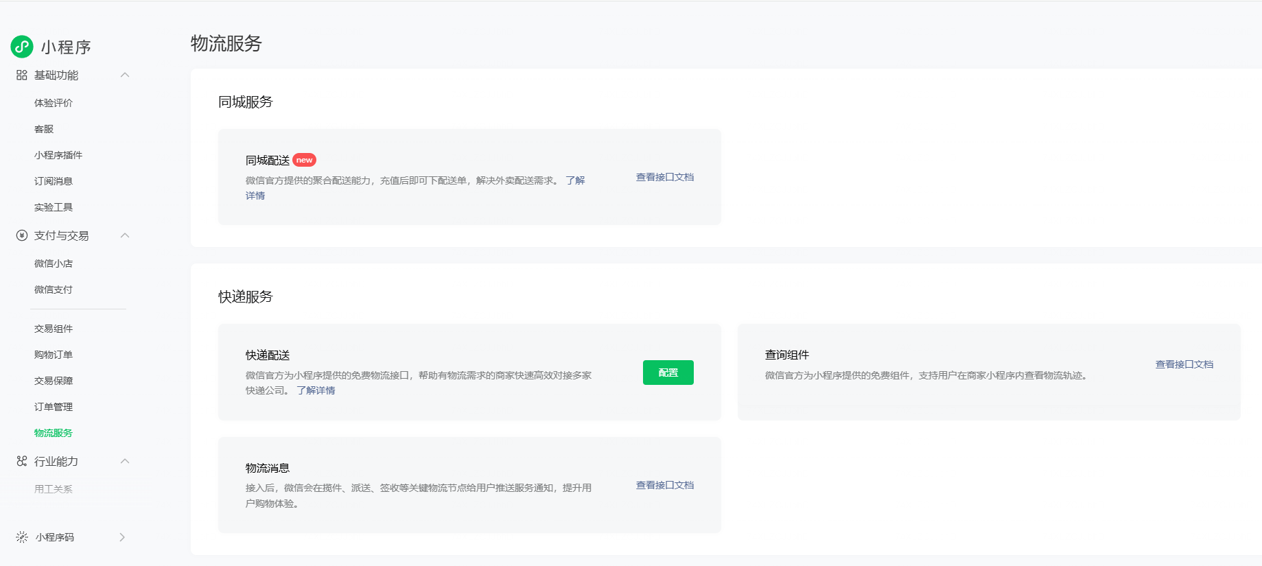 服务商代替商家配置了微信小程序 但是微信小程序看不到关联商户号信息 且开通了物流服务 但是接口还是不能使用https://developers.weixin.qq.com/miniprogram/dev/platform-capabilities/business-capabilities/order-shipping/order-shipping.html#%E4%B8%80%E3%80%81%E5%8F%91%E8%B4%A7%E4%BF%A1%E6%81%AF%E5%BD%95%E5%85%A5%E6%8E%A5%E5%8F%A3 这个接口 想点击微信商户授权 但是没有这个按钮且微信支付对应的商户那边都不出信息