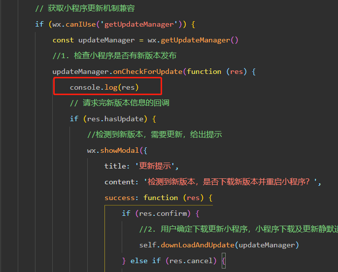 你好,请参考文档:https://developers.weixin.qq.com/miniprogram/dev/api/base/update/UpdateManager.onCheckForUpdate.html
