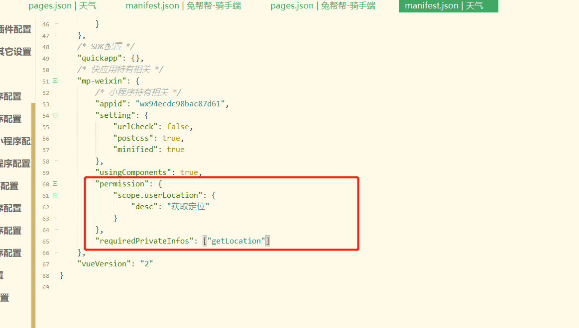 小程序是用uni-app创建的工程,现在要求对定位进行配置,但是我的工程中没有app.json文件,看uni-app文档说是在manifest.json中配置,我也配置了,最后提交审核的时候还是报