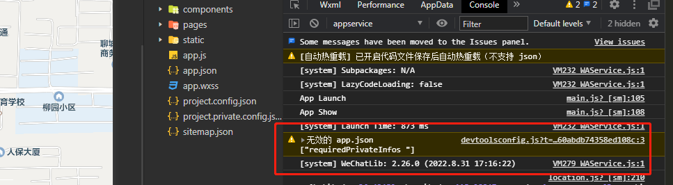 我的一直报错,无法获取定位,app.json无效